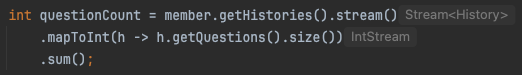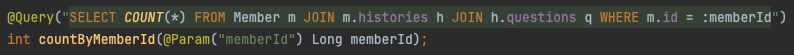 그런데 사실 그도 그럴 것이 기존에 멤버가 질문한 개수를 구하는 로직은 이렇게 작성되어 있었다.