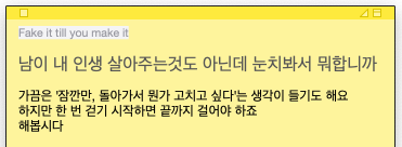 이거 진짜 실제로 내가 노트북에 적어놓고 맨날 보는 말들인데,