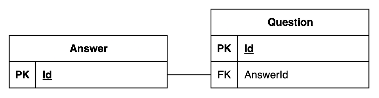 만약 OneToOne으로 대응되는 Question 엔티티와 Answer 엔티티가 존재하고 Answer쪽에 FK가 존재한다고 해보겠습니다