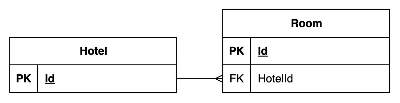 호텔 예약 사이트에 호텔 엔티티와 그 호텔에 있는 방 엔티티들이 1-N 관계로 설정되어 있습니다