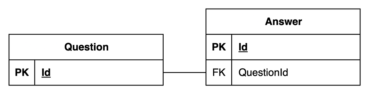Question 쪽에 Answer의 PK를 FK로 두면?