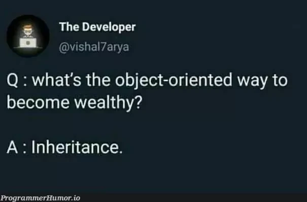 이러한 관계는 클래스들 사이에서 상속 관계로 나타낼 수 있다. "사과는 과일이다" 라는 문장에서 과일은 사과의 부모 클래스가 되고 다음과 같이 나타낼 수 있다.